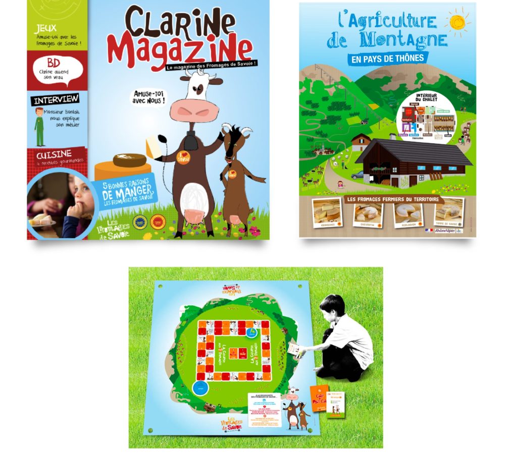 Dans un contexte de manque de connaissance et d’information des enfants sur toutes les variétés de fromages, leur processus de fabrication et les métiers liés à cette industrie, nous avons accompagné et conseillé l’Aft’Alp dans le développement de contenus de marque ludo-pédagogiques pour valoriser la filière et permettre aux enfants de 6 à 12 ans de mieux connaître les Fromages de Savoie.